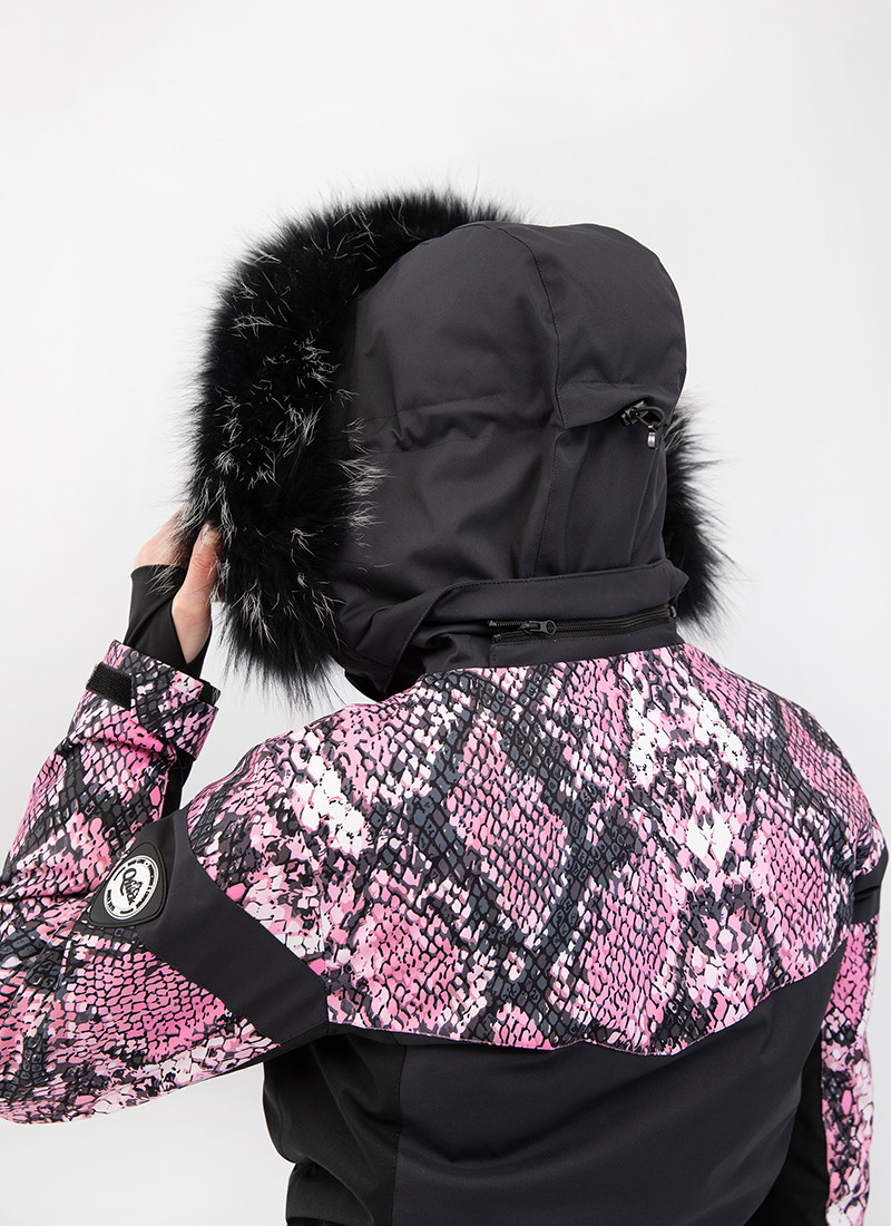 - Съемный капюшон, регулируемый по объему и декоративной съемной опушкой из натурального меха енота,