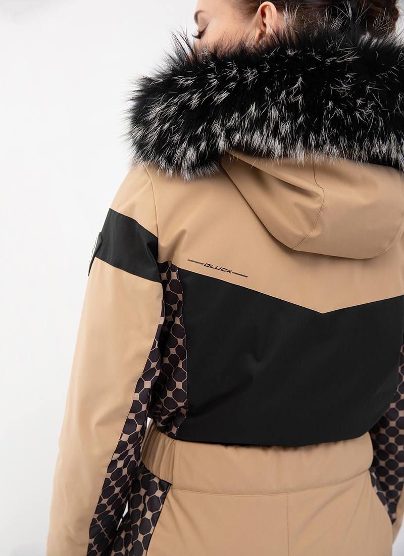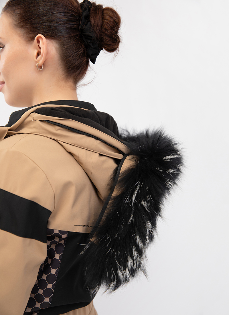 - Съемный капюшон, регулируемый по объему и декоративной съемной опушкой из натурального меха енота,